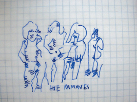 In ihren Filmen, zumeist sehr kurzen Essays, insistiert sie mit den animierten Zeichnungen gleichsam auf den „Objekten“ in Bewegung und Transformation, ob dies nun die flatternden Vorhänge einer fiktiven Öffnung seien, die den Blick auf merkwürdig sich verändernde „Gewächse“ in der Landschaft freigibt, die nach unten „hängenden“ und sich überkreuzenden blauen Linien, welche sich durch die Unterbrechung mit grünen Vertikalen erst als „Leitungen“ lesen lassen – so wie man sie etwa aus einem langsam fahrenden Zug erkennen kann – , die bloß einen kurzen Moment vor unsern Augen erzitternden und sich innerhalb von 40 Sekunden in Schraffuren und schließlich einen davonschwimmenden Fisch auflösenden vier Mitglieder der frühen Punk-Rock-Band „The Ramones“, oder die drei einfach umrissenen Köpfe in einem ihrer jüngsten Animationsfilme, „Powerpainters Lullaby“, die nur ihre Münder und – ab und zu – ihre Augen bewegen. Die Illusion der zum monotonen Gesang synchronen Lippenbewegungen der wie im „Zoom“ wiedergegebenen Gesichter entsteht durch klar sichtbare „Korrekturen“, durch weiße Übermalungen der jeweils vorangehenden kruden Lineamente.