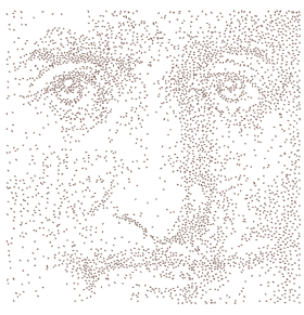 Bei genauerem Hinschauen lassen sich die schwarzen Punkte als Fliegen, genauer: Fruchtfliegen erkennen, die der Künstler digital zu einem Gesicht zusammengesetzt hat. Die winzige Drosophila, die in der wärmeren Jahreszeit sich überall und in kürzester Zeit heftig zu reproduzieren im Stande ist, erscheint hier als Individuum und zugleich als Glied einer ins Unendliche verlängerbaren Sozietät. Die Drosophila ist das Tier, das auf Grund seiner relativen Einfachheit mehr als jedes andere bei der Genforschung zum Einsatz gelangt. In Feuersteins „Thomas Hobbes“ zeigt sich zusätzlich zum sozialen Ansatz eine Öffnung in Richtung der Naturwissenschaften. Gleichzeitig assoziiert man mit der nahezu gewichtlosen Drosophila, die ja auf Grund ihrer Mobilität in Wirklichkeit an jedem Ort nur eine sehr kurze Verweildauer hat, so etwas wie eine ästhetische Leichtigkeit, aber auch Prekarietät, da die von den Tieren gebildeten Konstellationen jeweils nur von vorübergehendem Bestand sein können.