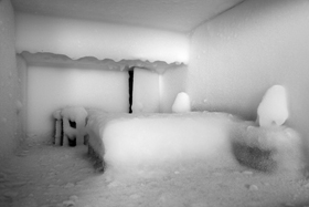 Die Flüssigkeit zieht sich zurück, scheinbar, hinterlässt Zerstörungsspuren und schließlich ab hier ist es definitiv klar, dass es sich um Wasser handelt, das zumal in einem anderen Aggregatszustand sofort wiederkommt: in Form von Eis; als eine die gesamte Raumform verändernde, aber direkt auf die Raumformen agierende neue körperliche Einheit, welche die Proportionen und formalen Strukturen unseres Raumes nicht nur dominiert, sondern völlig verändert. Die Dynamik steigert sich nun, und doch wird das gesamte Geschehen, der gesamte Ablauf immer mehr eingefroren.